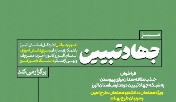 میز جهاد تبیین امور جوانان اداره کل استان البرز برگزار میکند: 🔰فراخوان جذب علاقه مندان برای پیوستن به شبکه جهاد تبیین در مدارس استان البرز🔰 (ویژه معلمان، دانشجومعلمان ،...
